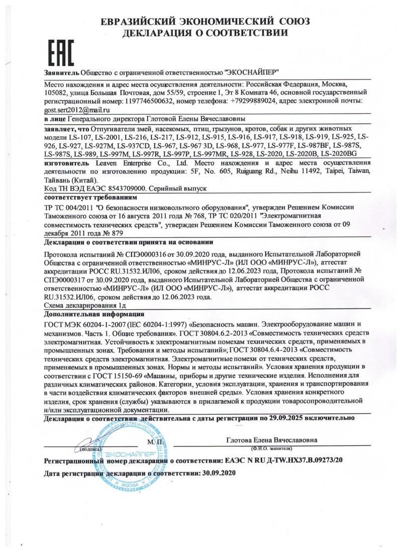 Приобрести отпугиватель собак «Экоснайпер LS-977F» по низкой цене в Петергофе очень просто: для этого достаточно оставить заявку нашим операторам по телефону или email.